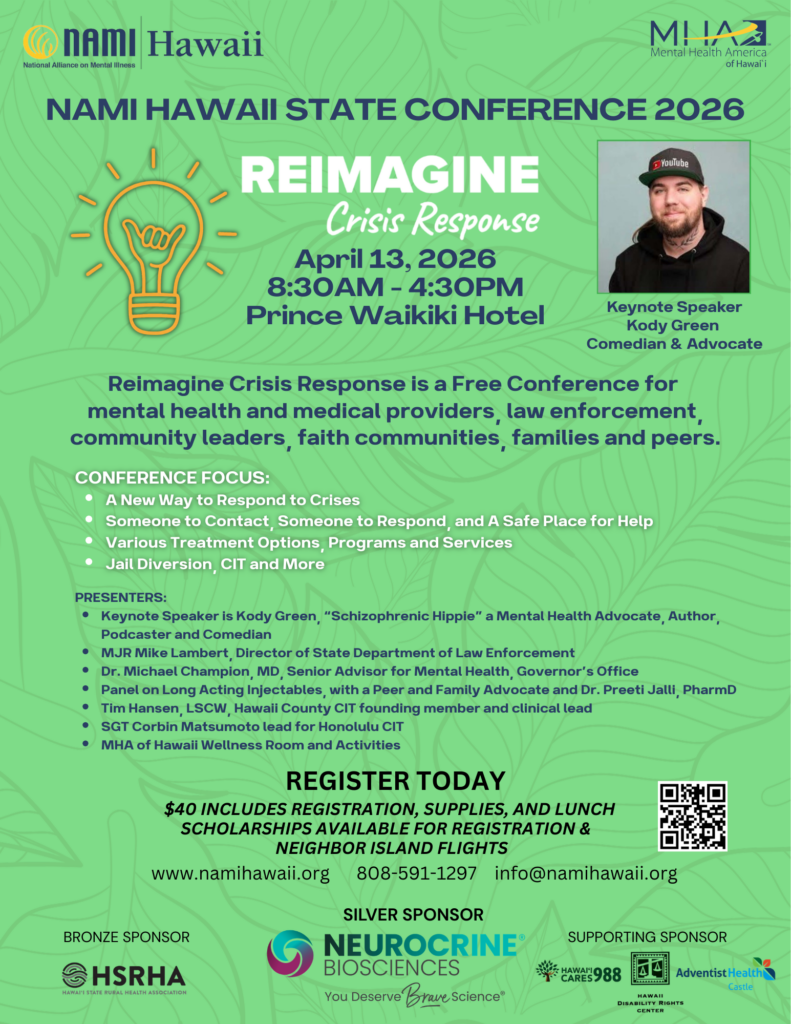 NAMI Hawaii’s annual State Conference is coming up on April 13th!