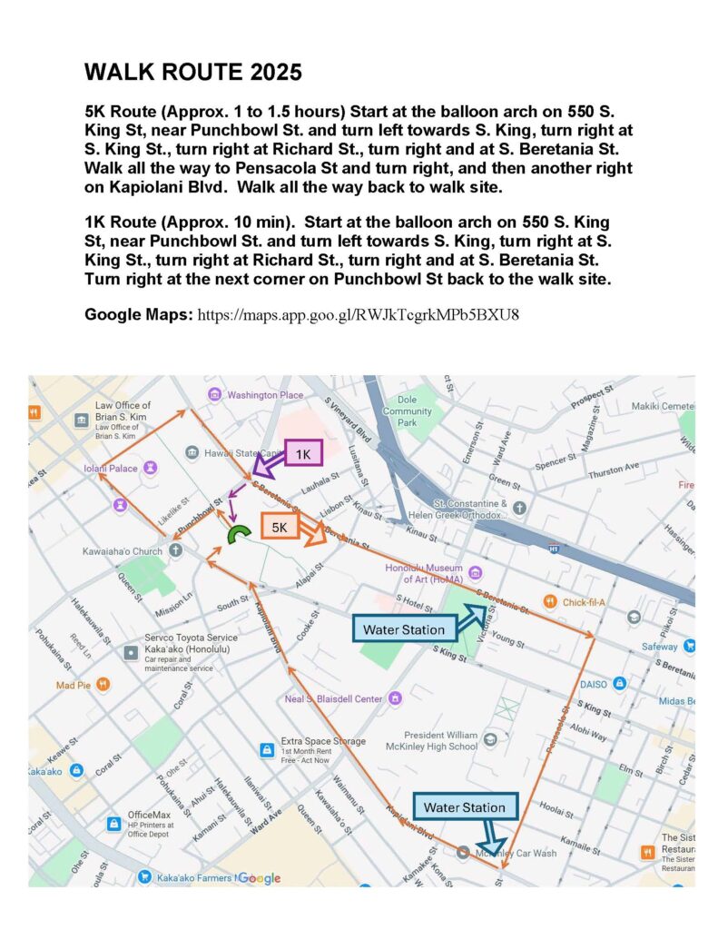 1. Where will the walk be located? The Honolulu walk will be at the Frank F. Fasi Civic Grounds, 550 S King St, Honolulu, HI 96813. Parking is available off S Beretania.
